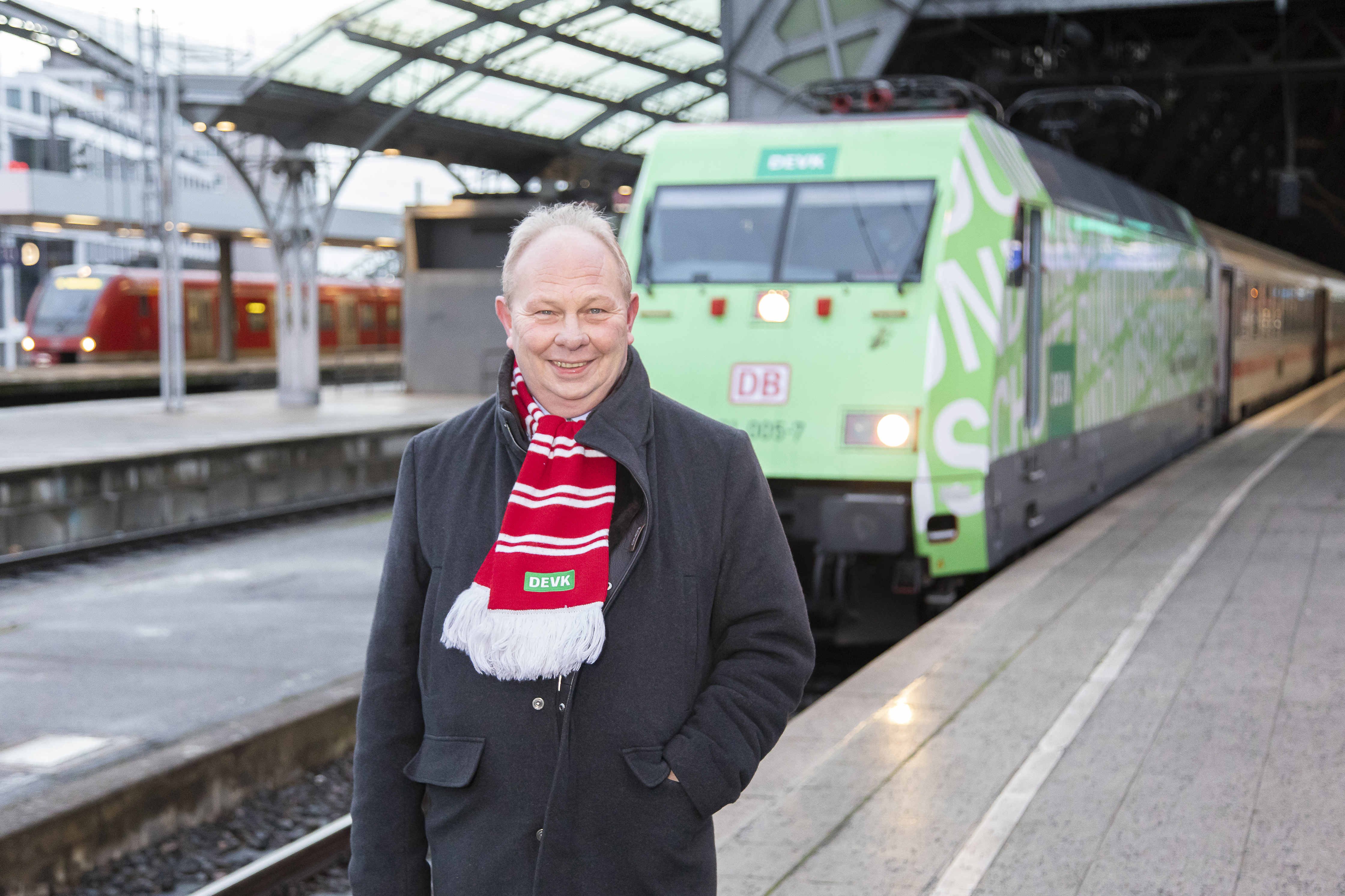 DEVK-Vorstandsvorsitzender Gottfried Rüßmann steht vor DEVK-Lok