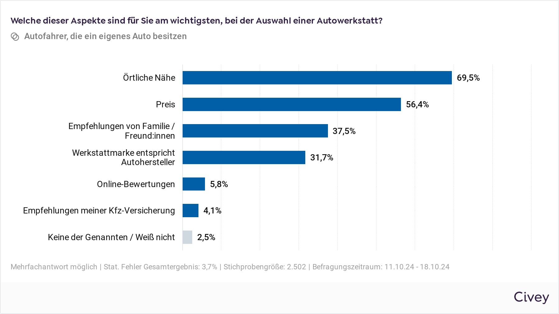 Bei der Wahl der Autowerkstatt ist die Nähe wichtiger als der Preis
